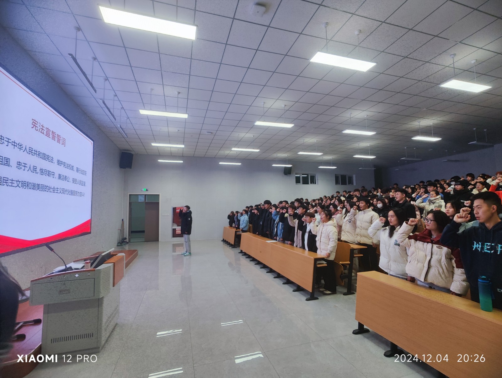宣讲活动开始前,体育系全体学生在邢凯的带领下面对宪法誓词进行了庄严宣誓:“忠于中华人民共和国宪法,维护宪法权威,履行法定职责……”,一句句激情澎湃、昂扬向上的誓词响彻整个阶梯教室,每个学生心中涌动着作为青年一代的责任感与使命感。